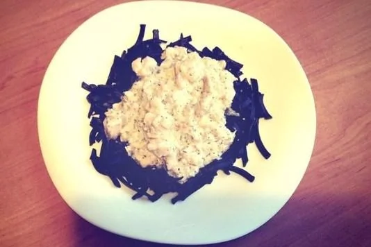Спагетти с чернилами каракатицы и лососем