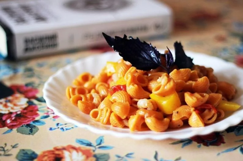 Паста томатная с креветками и овощами