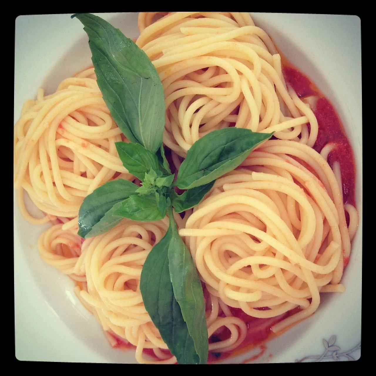 Ингредиенты для приготовления Спагетти с помидорами черри и базиликом: