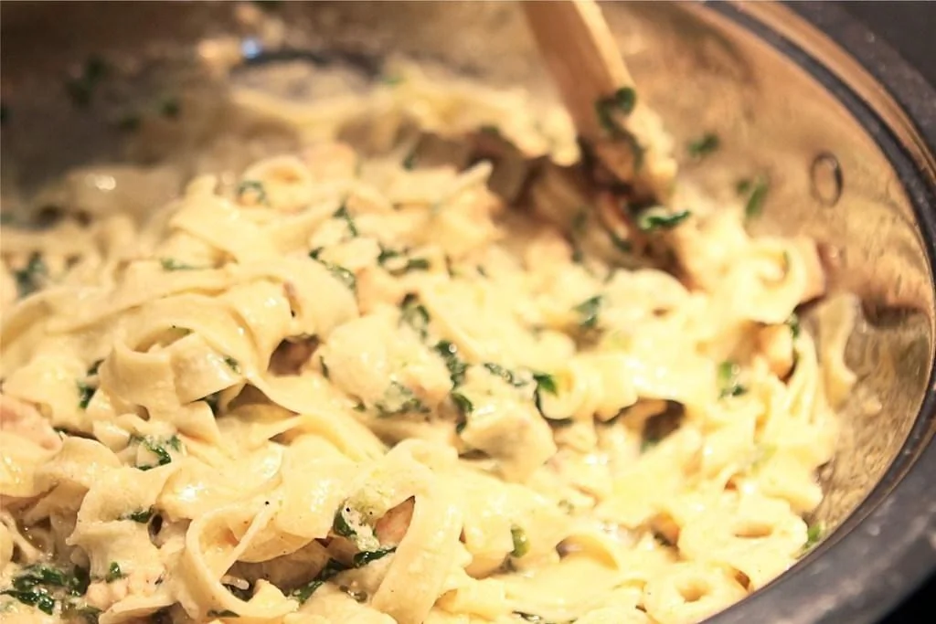 Ингредиенты для приготовления Паста с семгой и шпинатом в сливках:
