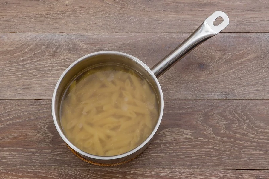 ШАГ 1 В подсоленной воде отварите пенне в течение 7 минут, воду слейте и сохраните.