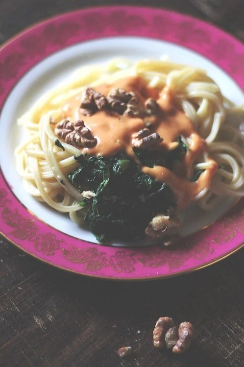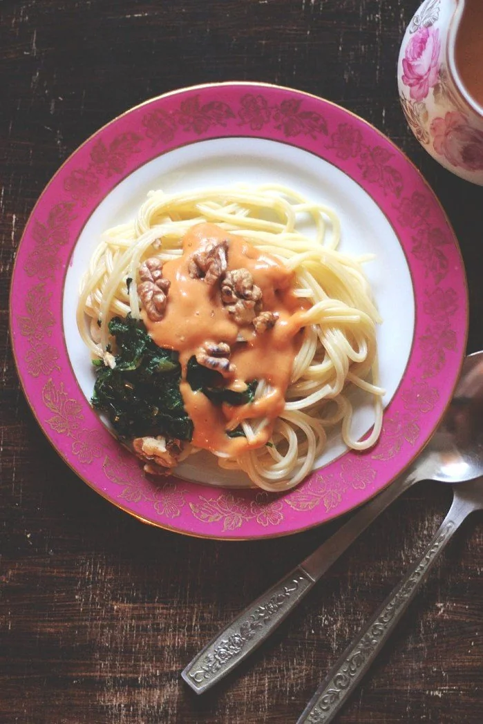 Паста со шпинатом и соусом из фасоли