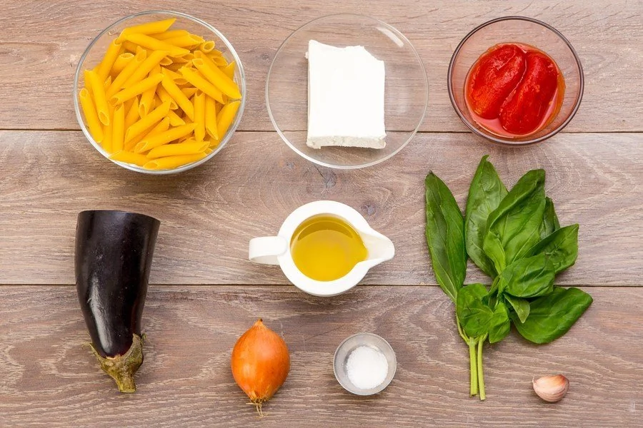 Ингредиенты для приготовления Пенне с баклажанами и фетой: