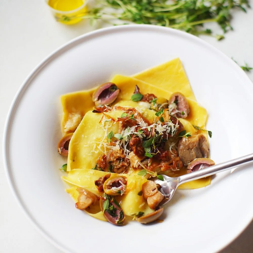 Ингредиенты для приготовления Открытая лазанья с белыми грибами и оливками:
