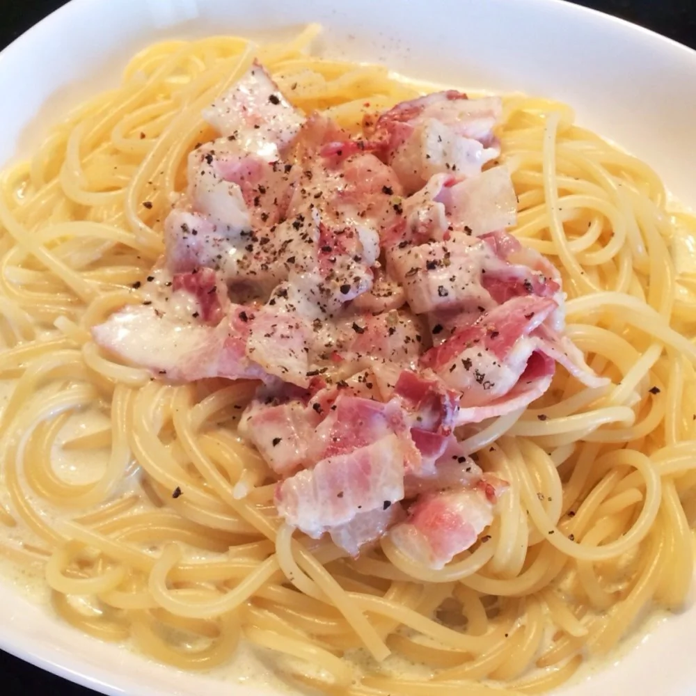 Ингредиенты для приготовления Спагетти в сливочном соусе с песто и беконом: