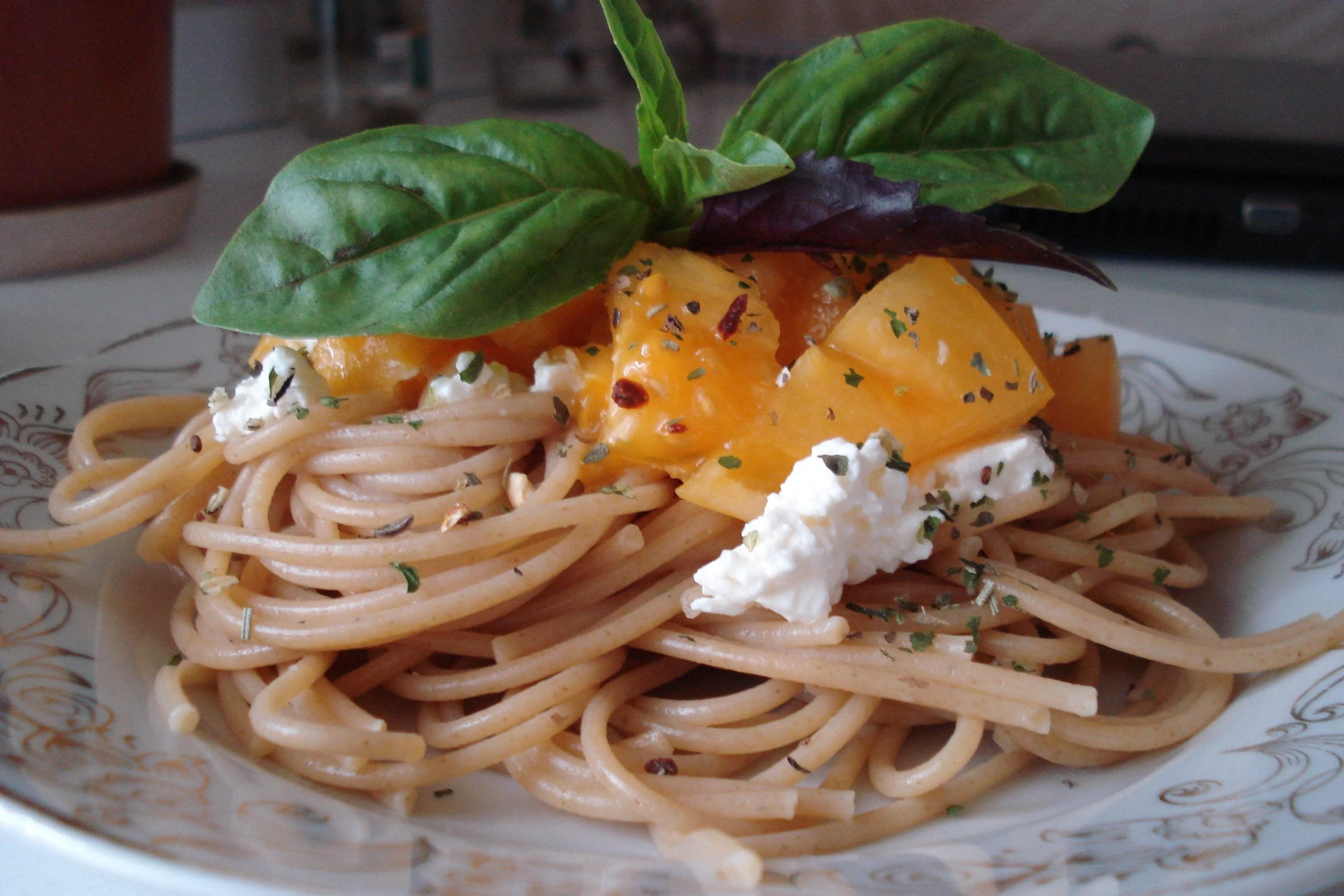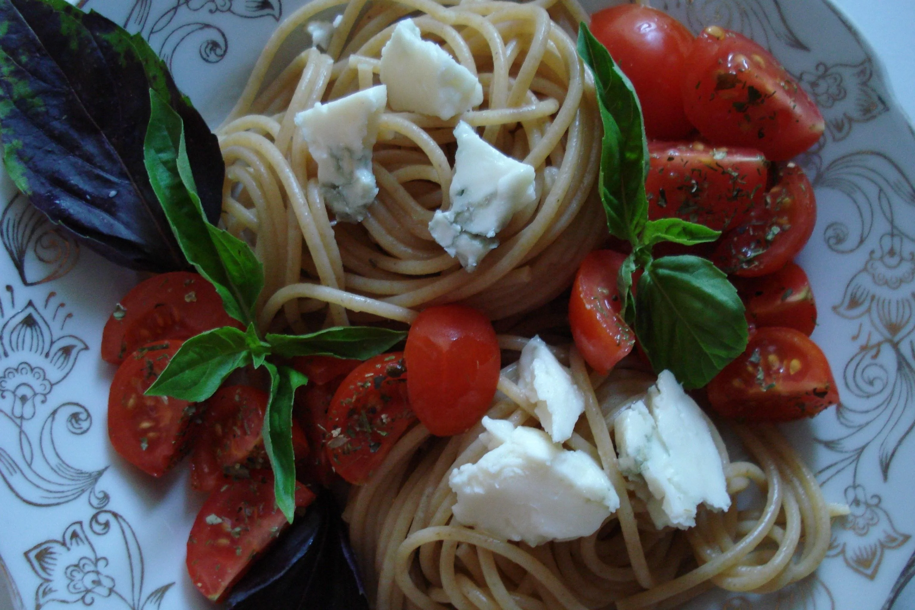 Спагетти с фетой и оливками