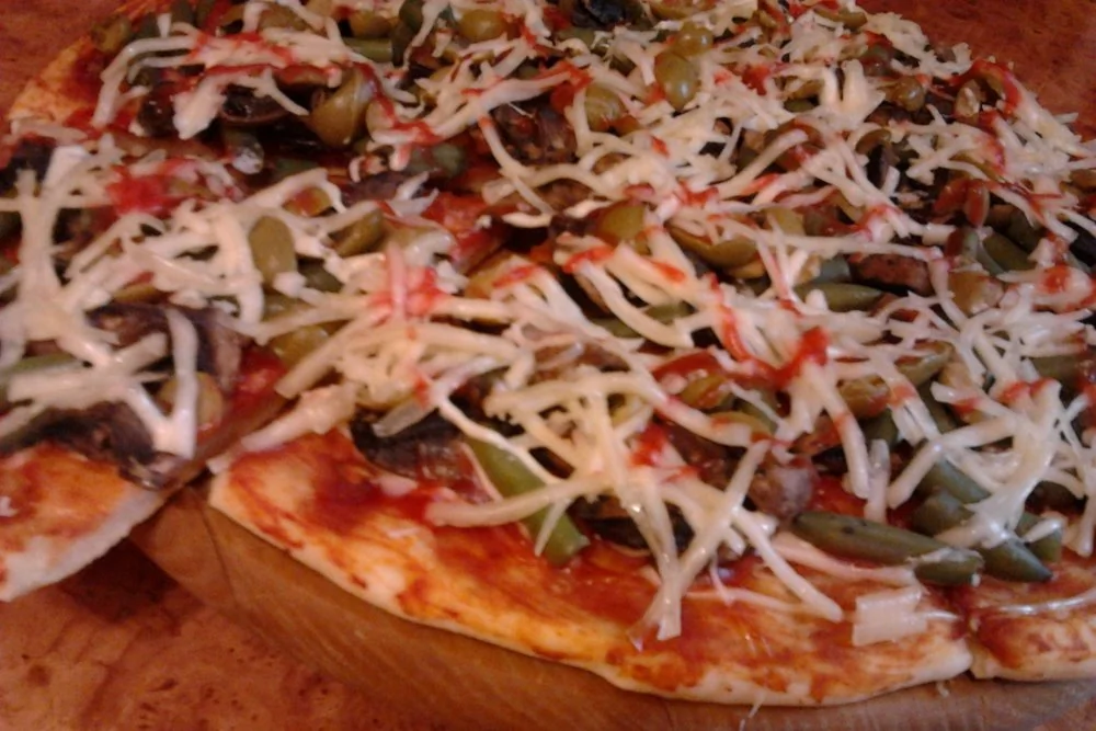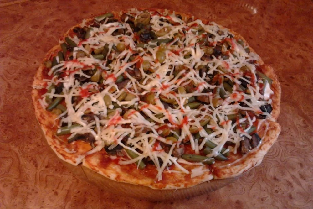 Ингредиенты для приготовления Пицца с колбасой, зеленой фасолью и оливками:
