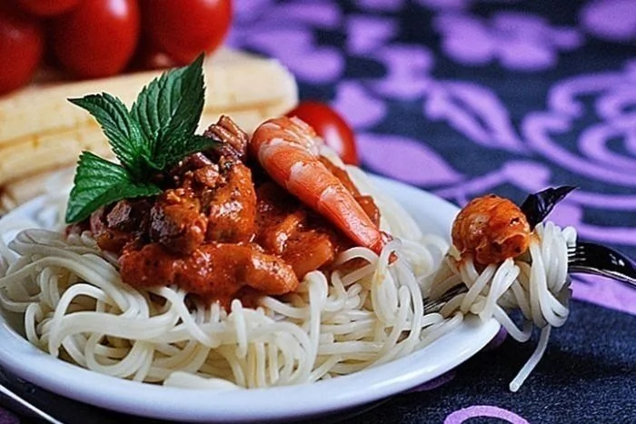 Ингредиенты для приготовления Паста с морепродуктами в томатном соусе: