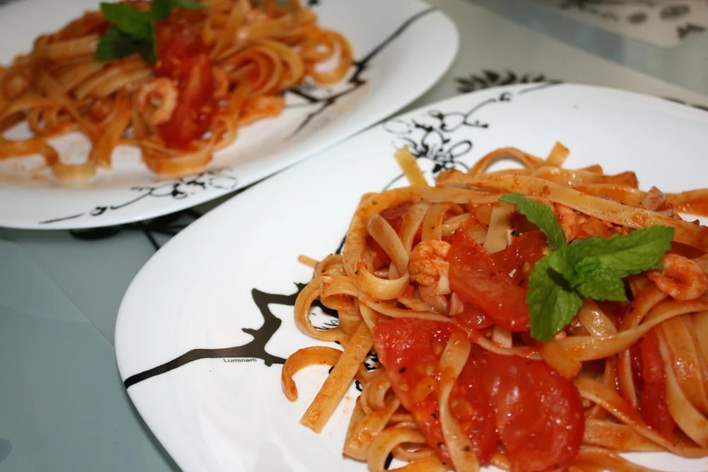 Ингредиенты для приготовления Паста с креветками под томатно-чесночным соусом: