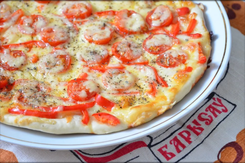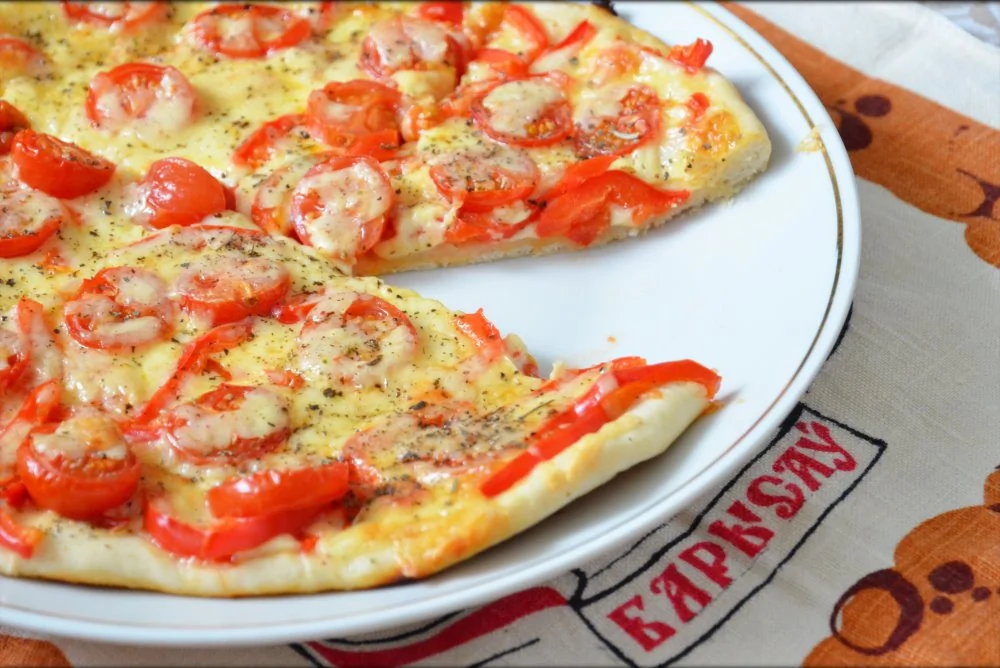 Пицца по итальянски с помидорами черри и двумя видами сыра