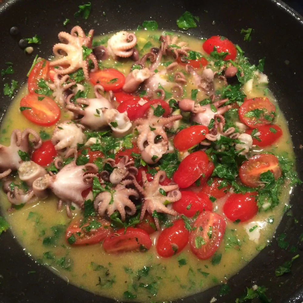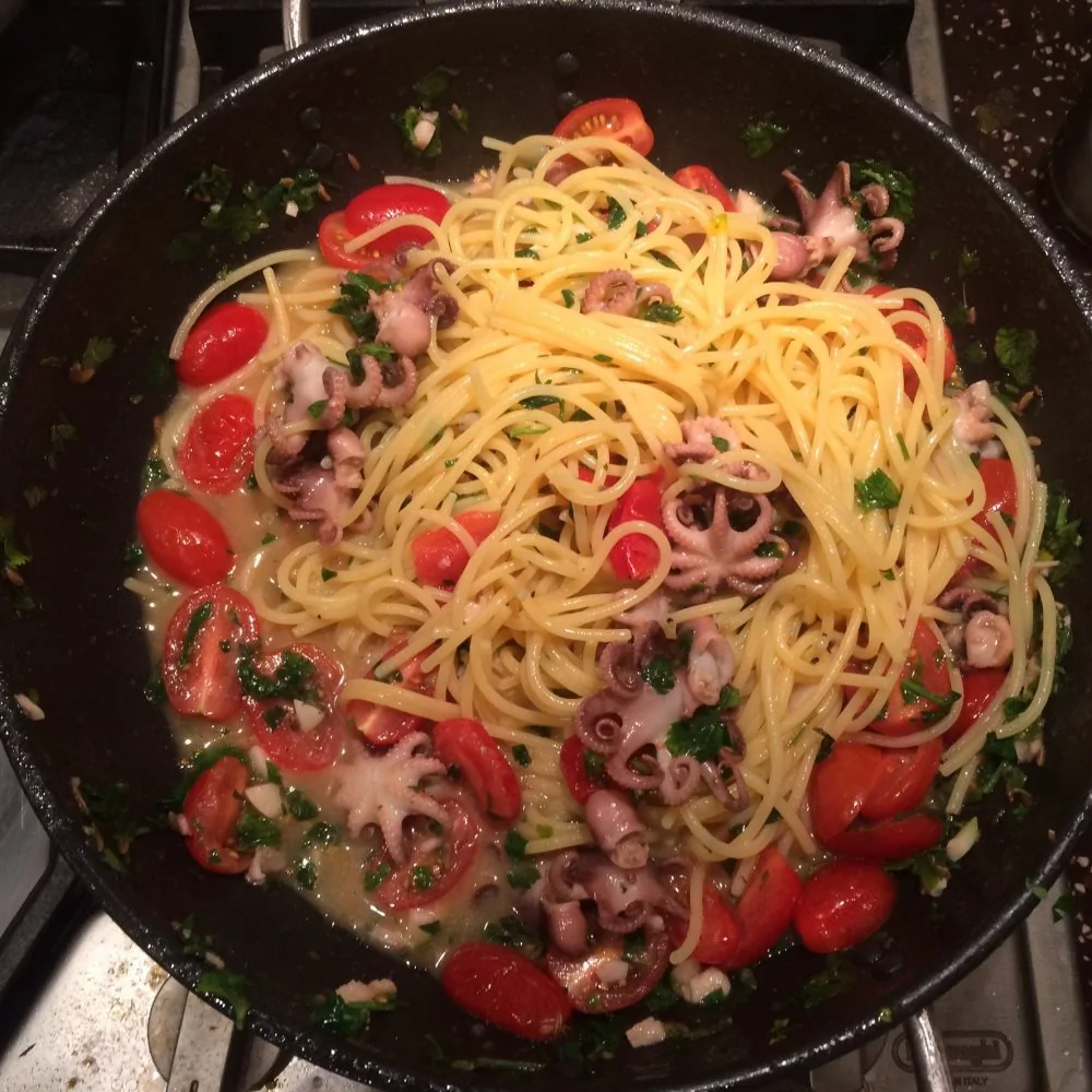 Ингредиенты для приготовления Спагетти с мини осьминогами: