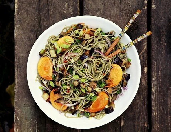 Лапша с баклажанами и хурмой