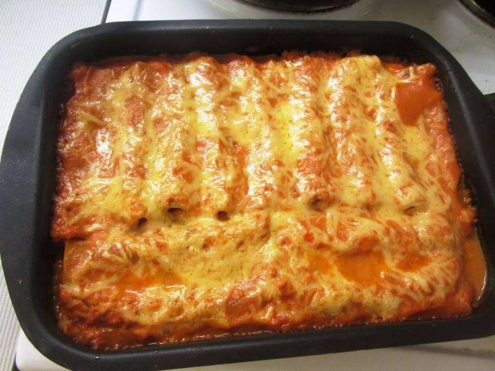 ШАГ 6 Выкладываем каннеллони на предварительно смазанный противень плотно друг к другу.