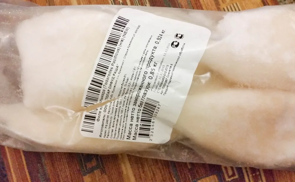 ШАГ 4 Шинкуем размороженное филе кальмаров.