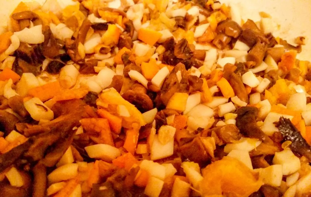 Гречневая лапша с кальмарами, грибами и цедрой