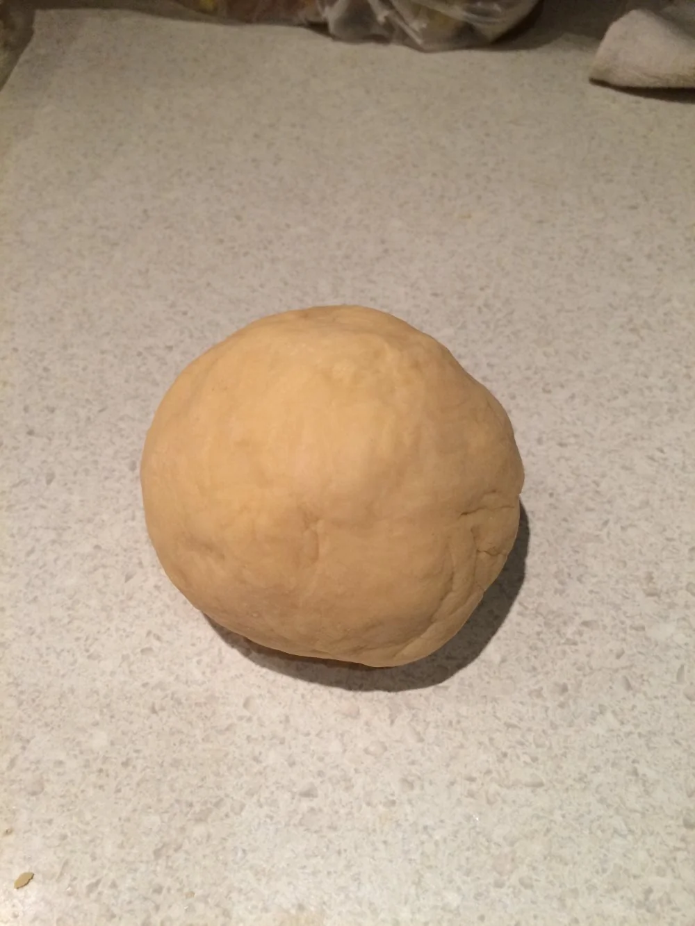 ШАГ 4 формируем тесто в шар и заворачиваем в пищевую пленку ( или полиэтиленовый пакет ) и убираем в холодильник минимум на 30 минут. тесто готово.