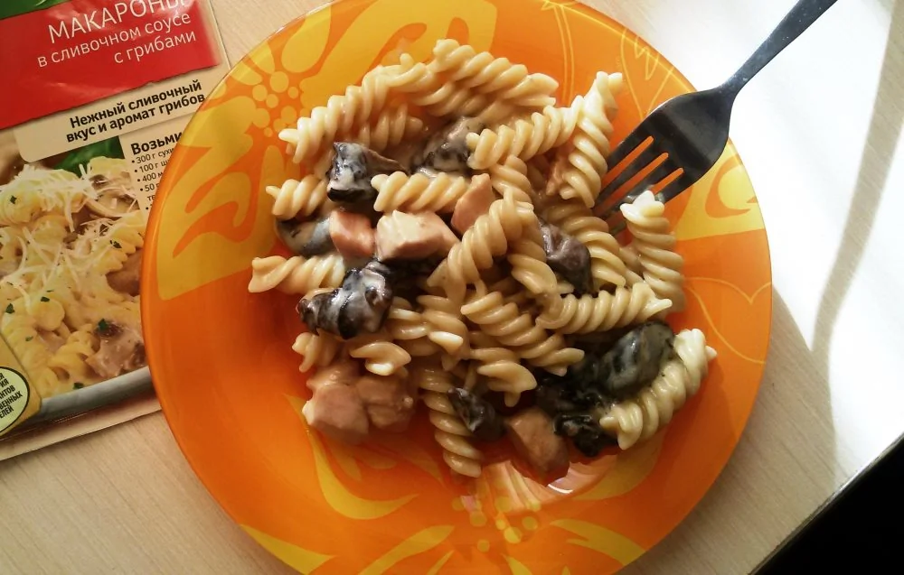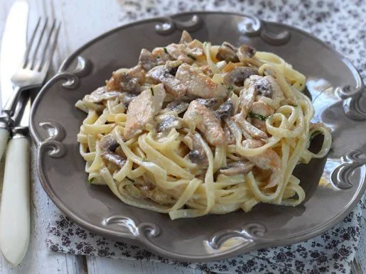 Ингредиенты для приготовления Спагетти с курицей и грибами в сливочном соусе: