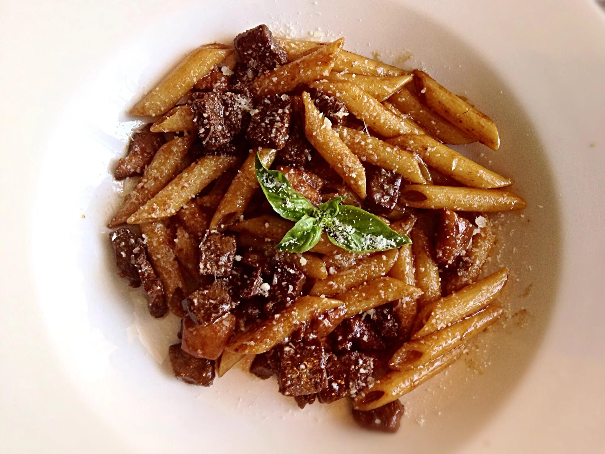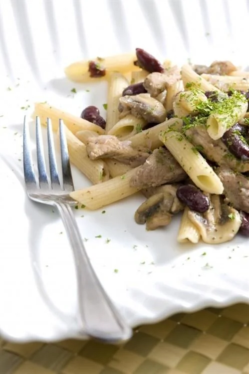 Ингредиенты для приготовления Пенне ригате со свининой и грибами в сметане: