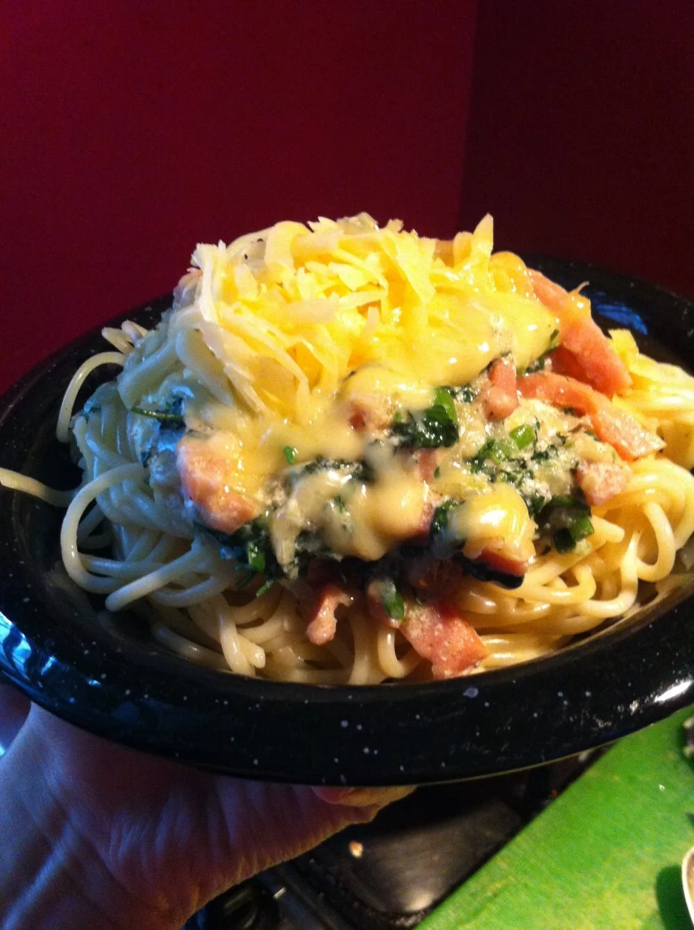 ШАГ 7 На тарелку положить макароны и полить сверху полученным соусом. Можно посыпать тертым сыром.
