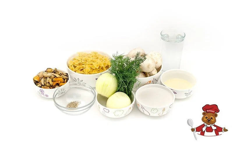 Ингредиенты для приготовления Паста с мидиями и грибами:
