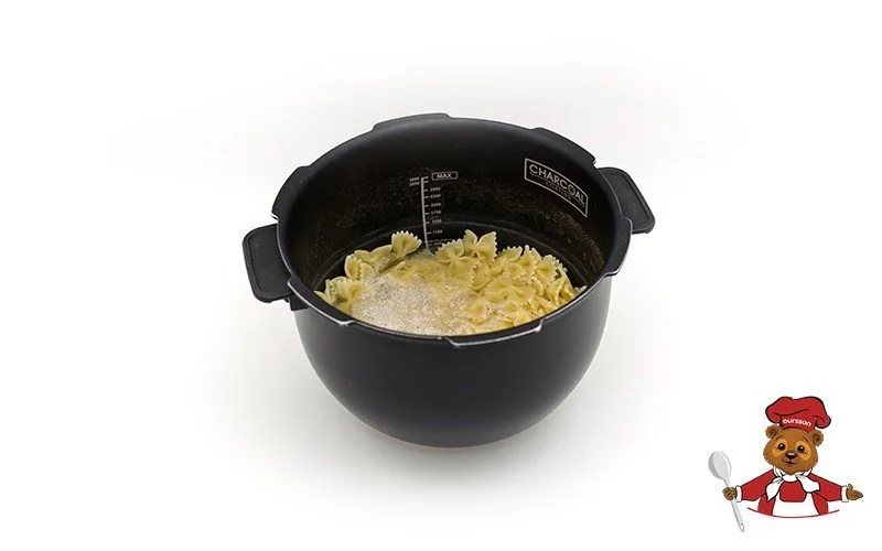 ШАГ 1 Влейте в чашу воду, добавьте 1 ч.л. Соли и доведите до кипения в мультиварке в режиме «Спагетти/Пельмени».