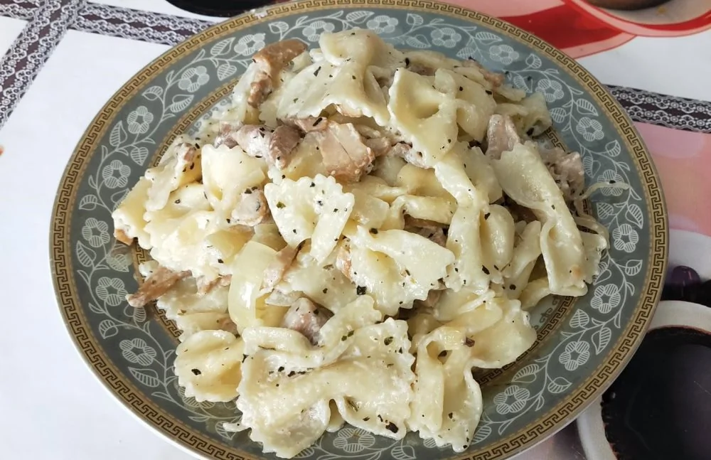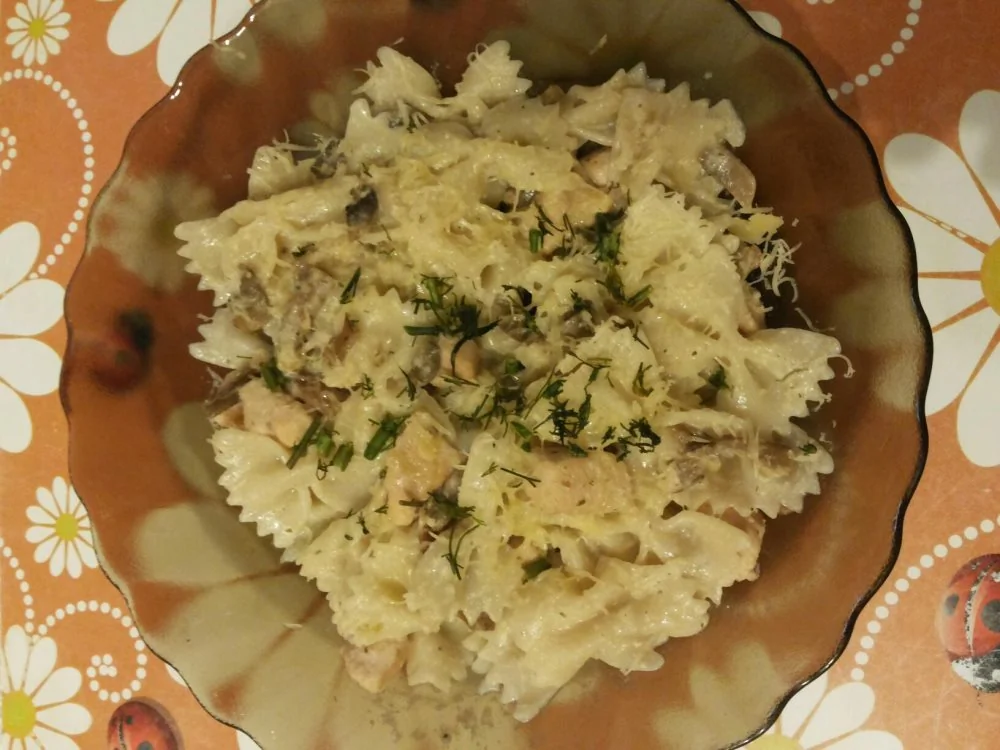 Ингредиенты для приготовления Фарфалле с курицей и грибами в сливочном соусе: