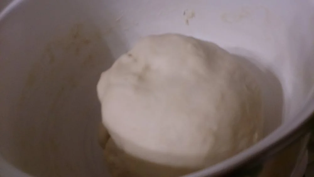 ШАГ 3 Добавить медово-дрожжевую смесь и остатки воды. Месить не менее 5 минут (тесто должно не приставать к рукам).