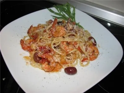 Паста с морепродуктами и овощами