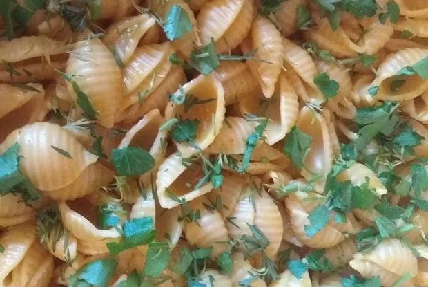 ШАГ 3 Тем временем, сварите макароны, пока они не будут готовы al dente, в течение 8 минут. Слейте воду с макарон и переложите их в сковороду с соусом. Отлейте 1 стакан воды от макарон и поставьте в сторону. Тушите, помешивая, в течение 5-20 минут. При необходимости подливайте воду от макарон в сковороду, чтобы сделать соус более жидким. Готовые макароны должны быть полностью покрыты соусом. Украсьте петрушкой.