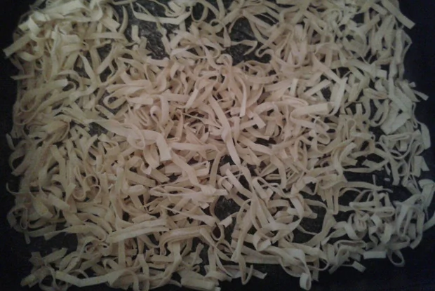 ШАГ 9 Готовую лапшу нужно немного подсушить. Ее можно просто оставить на столе часа на два или поставить в духовку минут на пять.