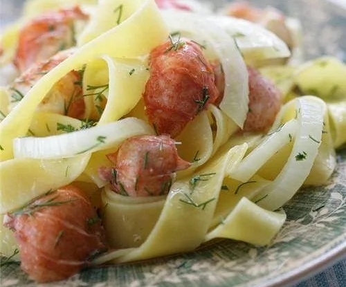 ШАГ 9 Выложить в макароны с фенхелем соус из раков, перемешать.