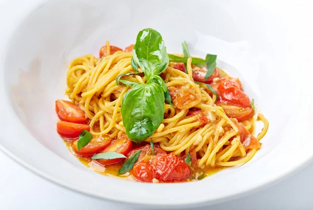 Тальолини с томатами даттерини и базиликом из ресторана Buono