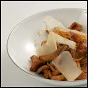 ШАГ 4 Добавить к соусу пасту, сваренную аль-денте и перемешать. Подавать украсив ломтиками пармезана и петрушкой.