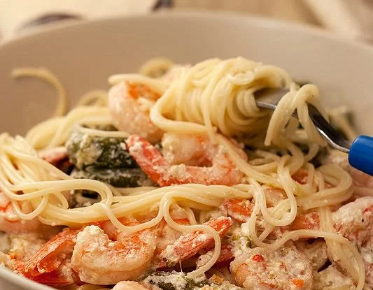 Ингредиенты для приготовления Паста со спаржей и креветками в сливочном соусе: