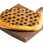 ШАГ 4 На тесто выложить лук, отступая от края теста на 5-7 см. На лук выложить анчоусы и маслины. Край теста смазать оливковым маслом. Запекать 15 минут в разогретой до 230 градусов духовке.