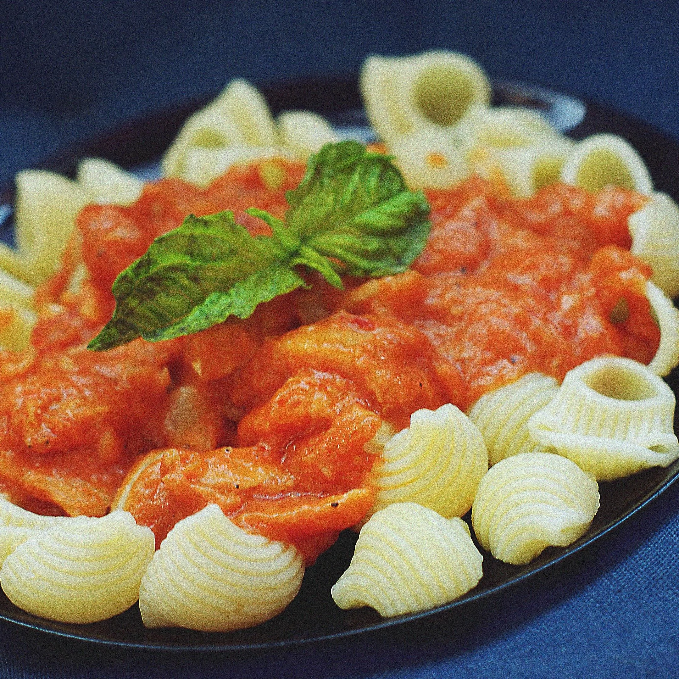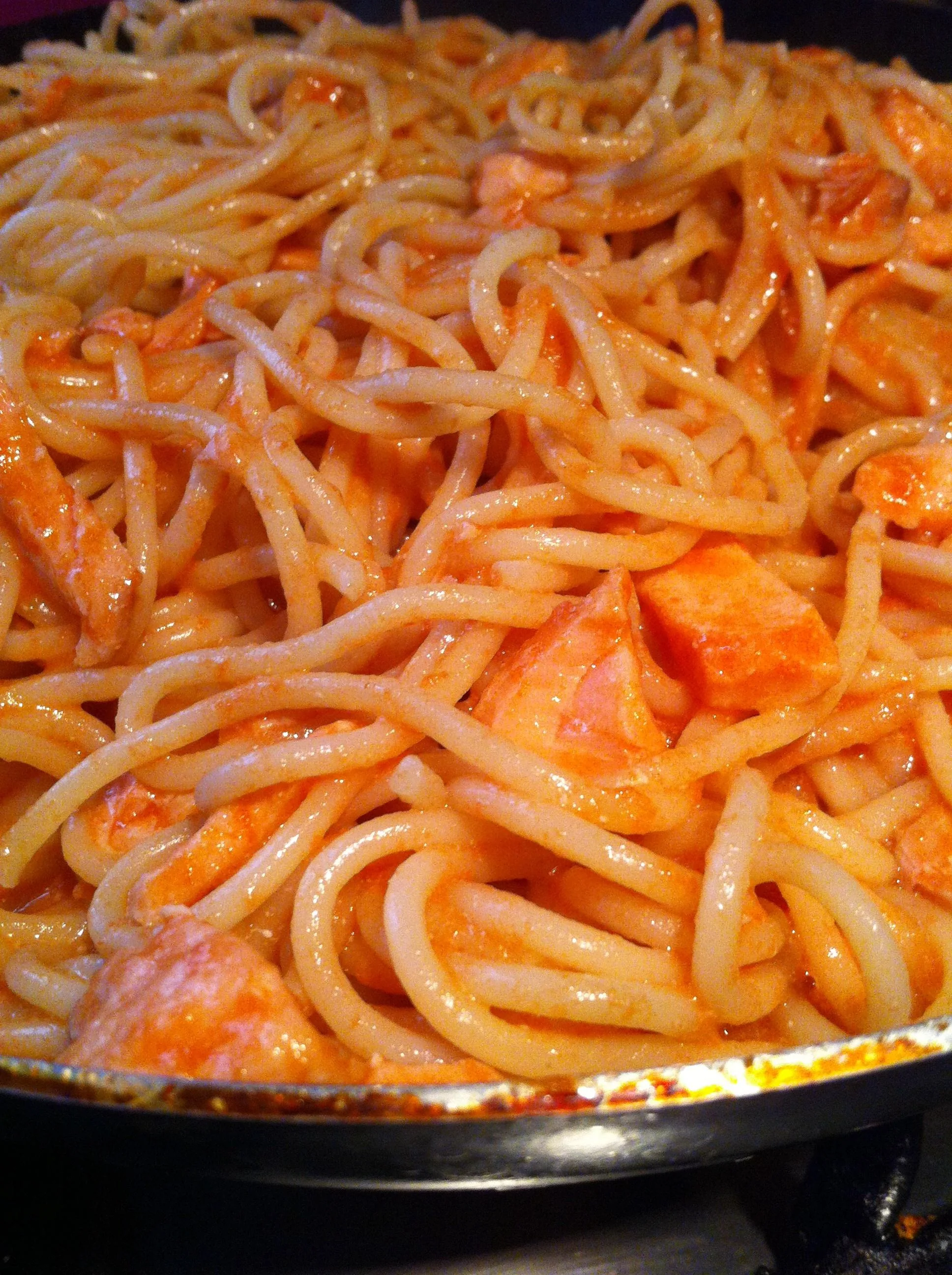 Паста со слабосоленым лососем в томатно-сливочном соусе