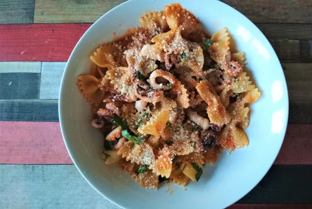 Паста фарфалле с осьминогом