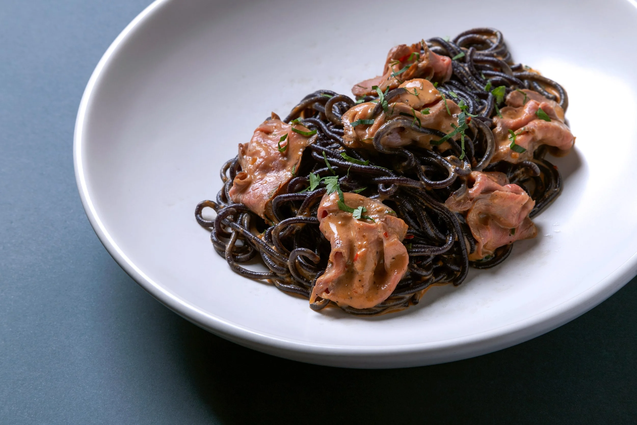 Ингредиенты для приготовления Черные спагетти с ростбифом в соусе черный перец: