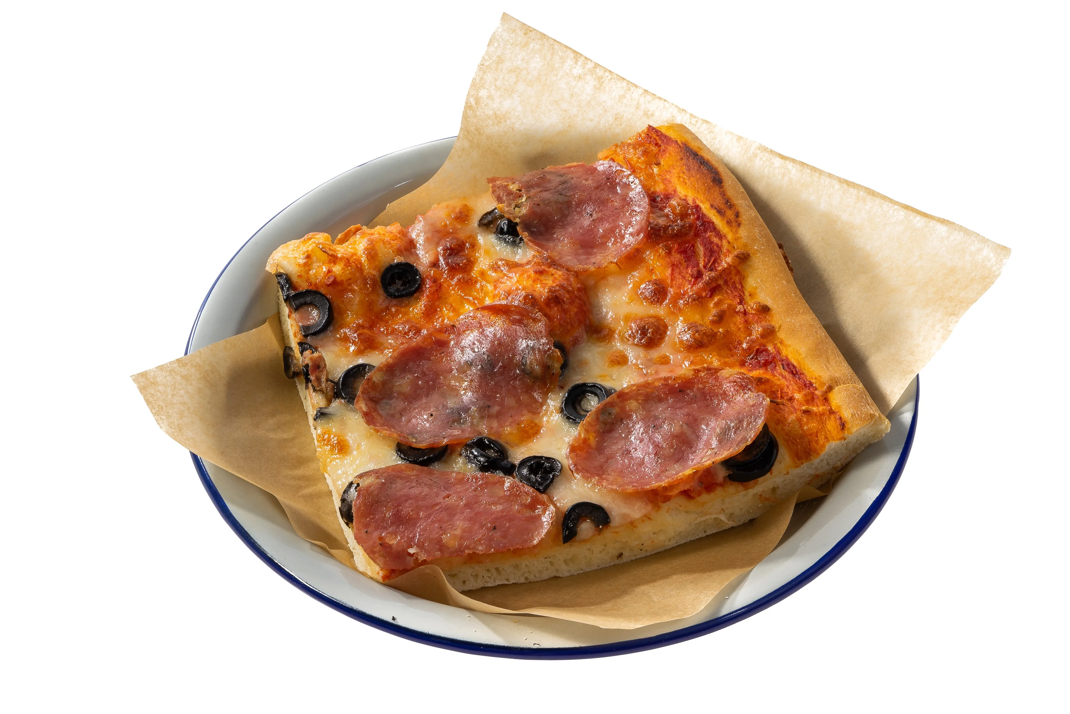 ШАГ 10 На соус выложить кусочки колбасы, колечки маслин и посыпать моцареллой.