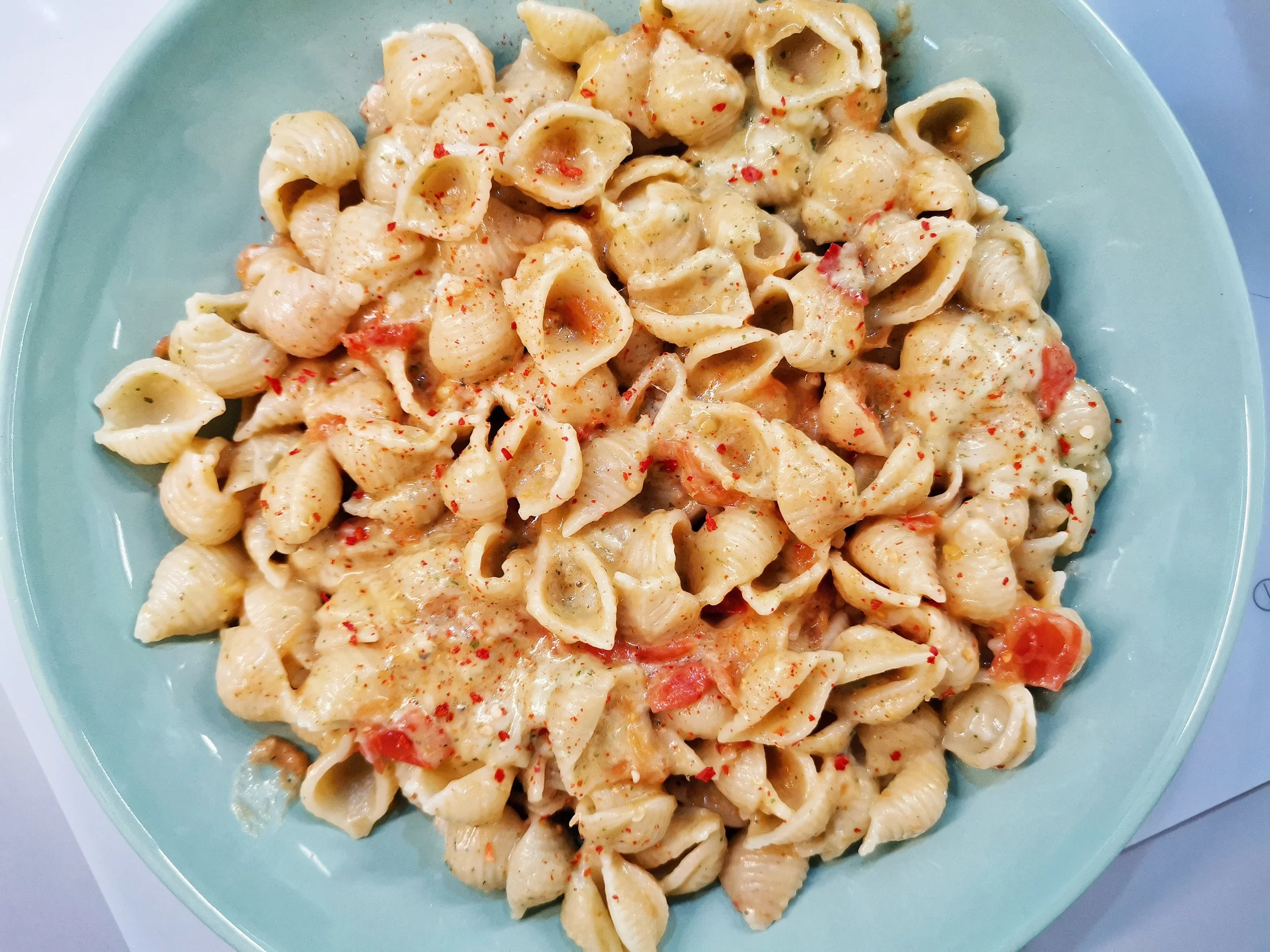 Конкилье с соусом песто и горгонзолой