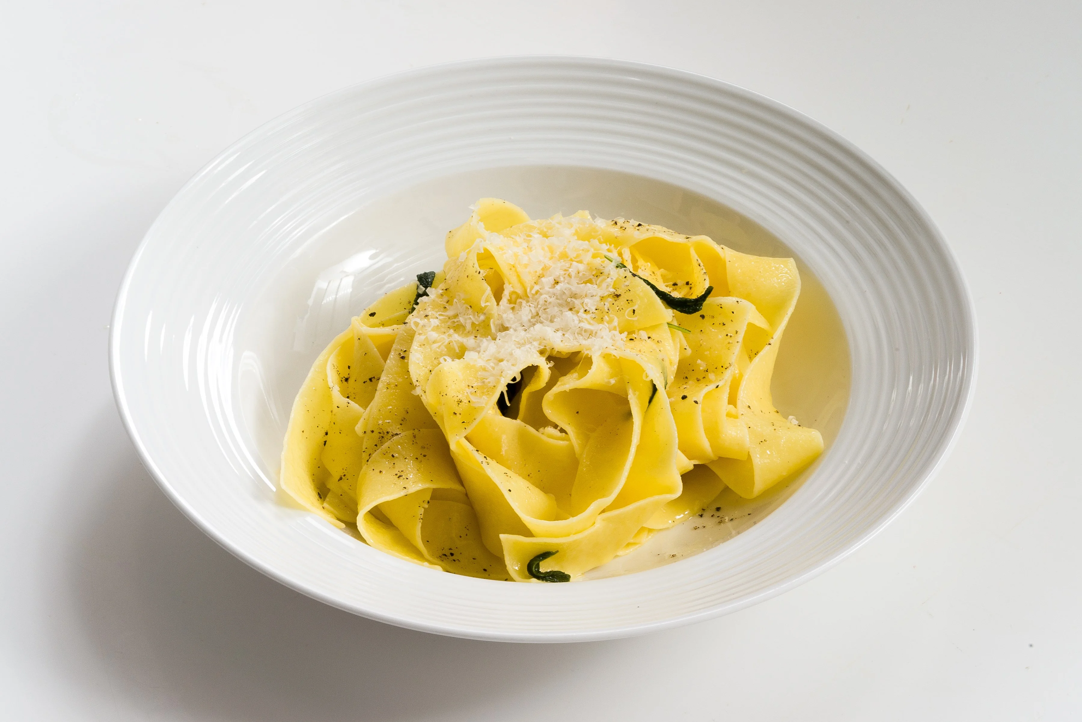 ШАГ 10 Когда масло разойдется, пасту присыпать свежемолотым черным перцем, разложить на тарелки и подавать с пармезаном.
