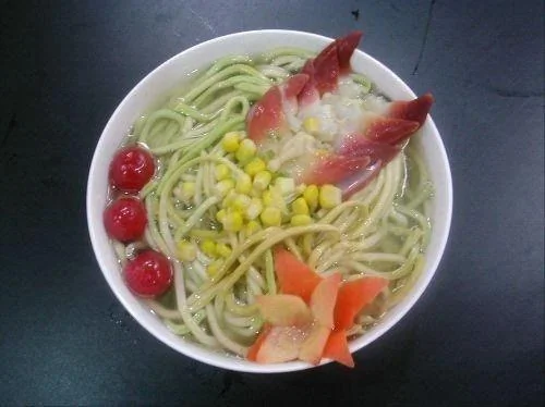 ШАГ 4 Подавать в бульоне с плоско нарезанными кусочками вареного мяса (любого), нашинкованным зеленым луком, чесноком. При желании можно добавить дополнительные ингредиенты.