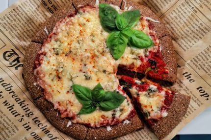 ШАГ 10 ПП-пицца готова. Украсить базиликом, приправить перцем чили и подавать.