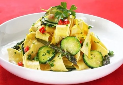 Тальятелле со спаржей, цукини, зеленым луком и цедрой лимона