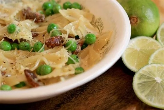 Ингредиенты для приготовления Фарфалле карбонара с зеленым горошком: