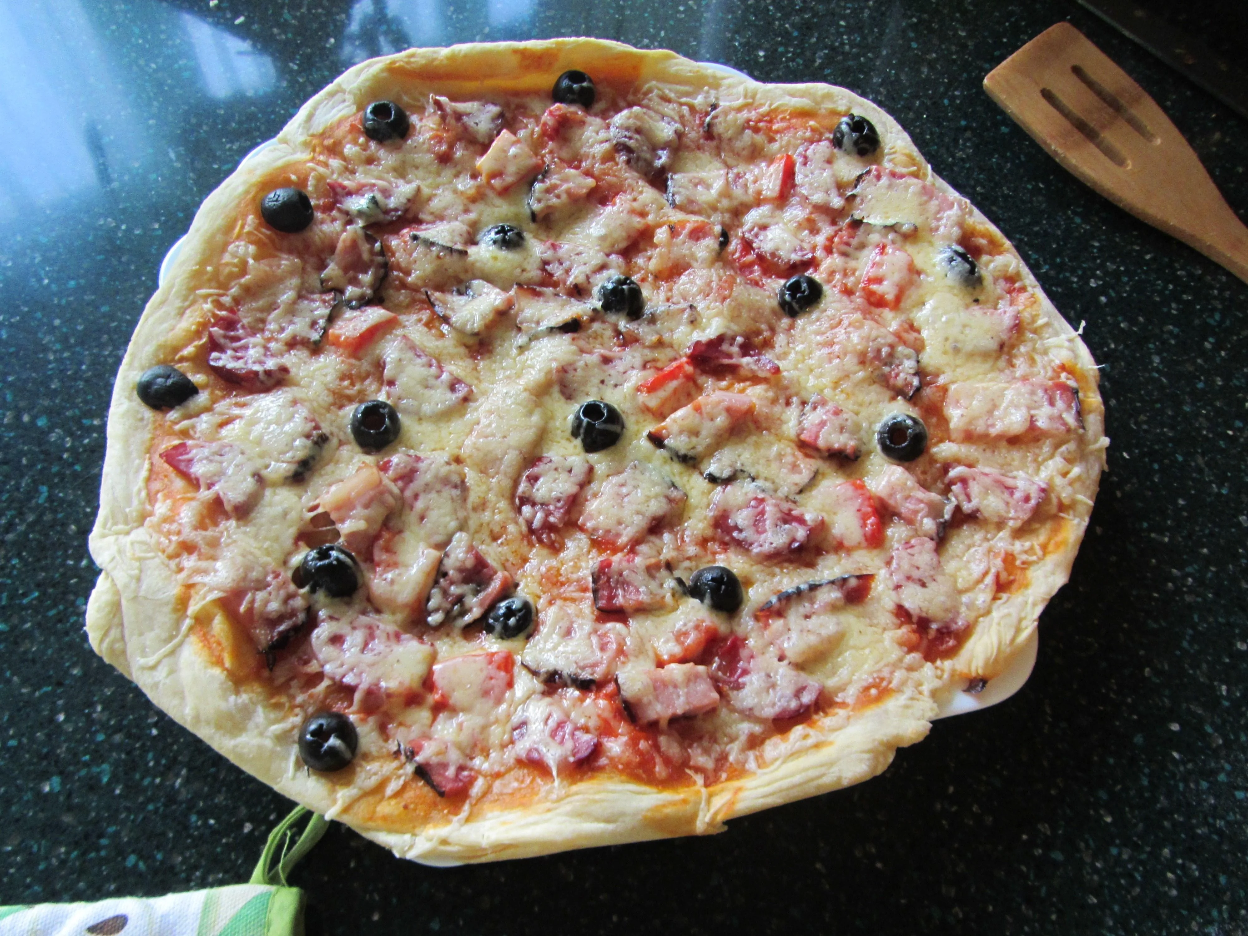 Ингредиенты для приготовления Пицца с овощами и копченым салом: