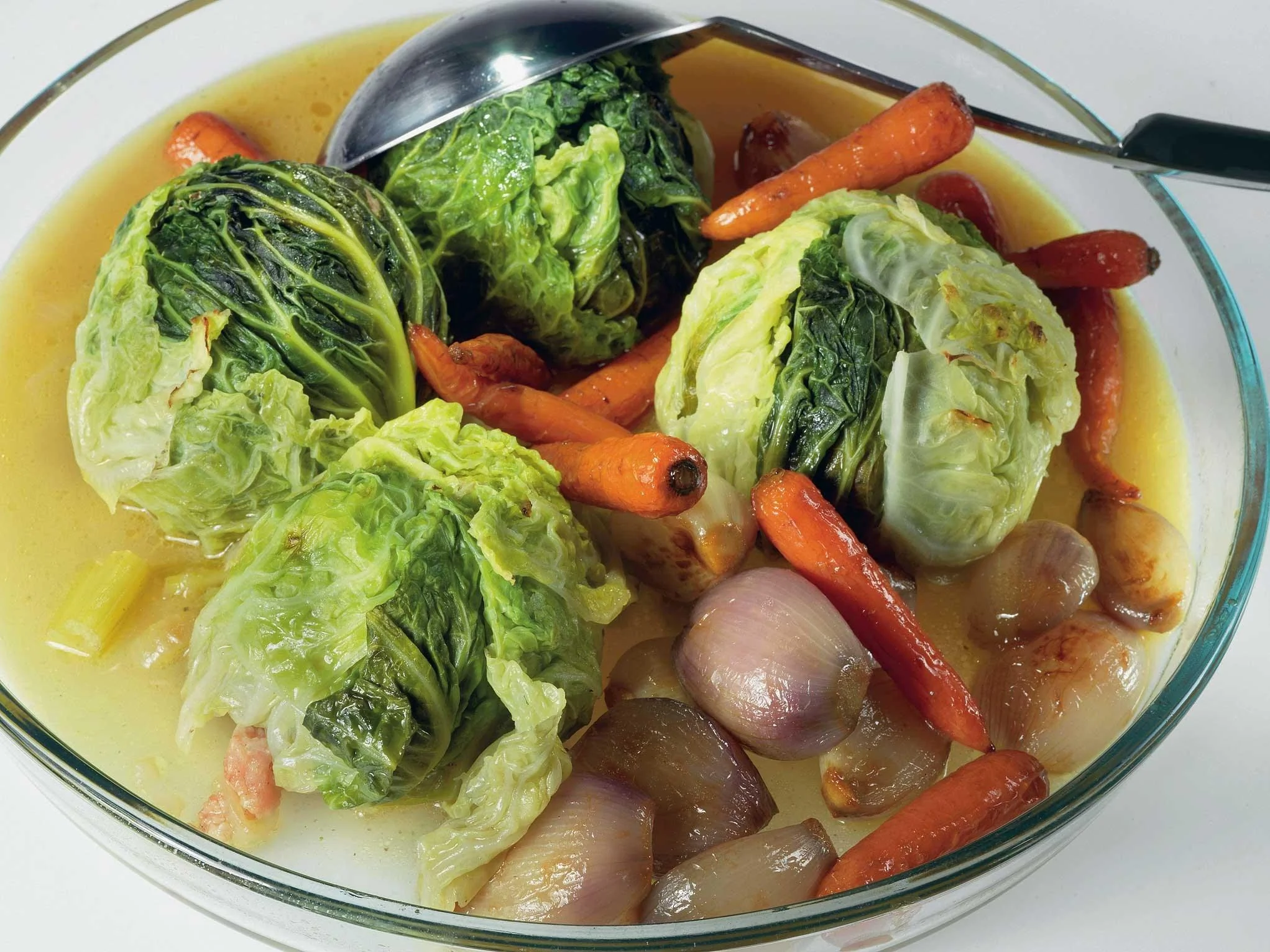 ШАГ 8 Готовые голубцы подавать с бульоном и карамелизованными овощами.