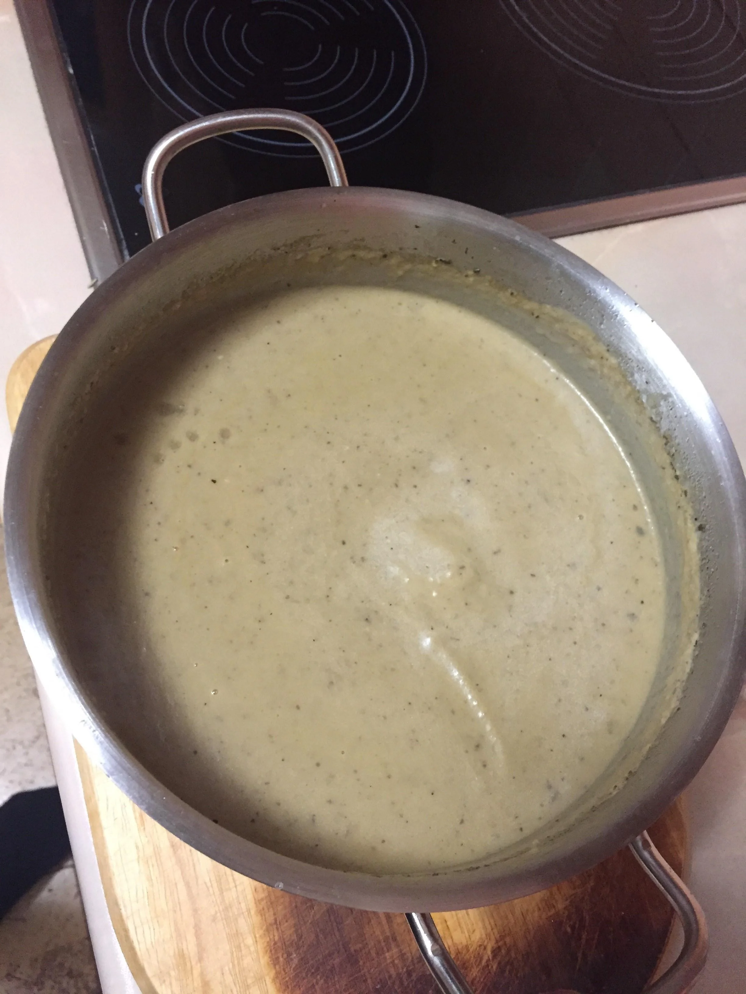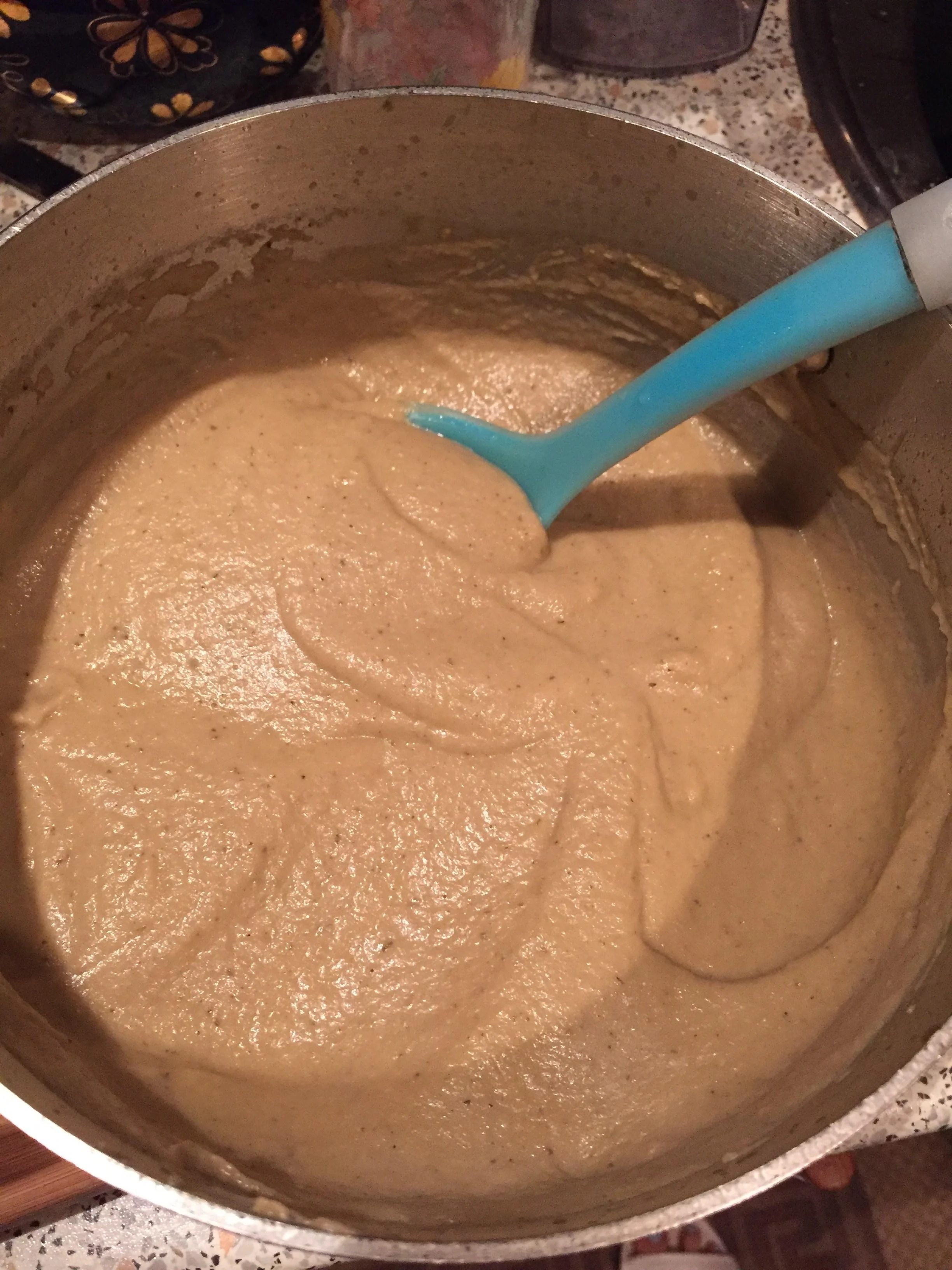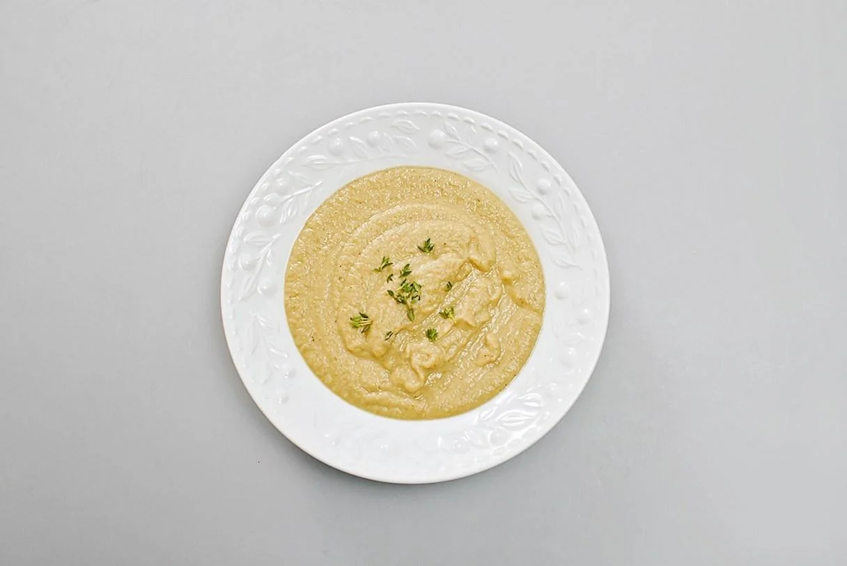 ШАГ 4 Снять кастрюлю с огня и с помощью погружного блендера превратить ее содержимое в пюре. А затем, при желании, дополнительно протереть через сито — для более воздушной консистенции. Добавить еще воды или бульона, если необходимо, посолить и поперчить по вкусу.