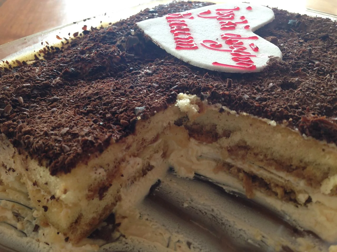 ШАГ 6 Залить верхний слой савоярди оставшимся кремом и слегка постучать по бокам формы лопаткой, чтобы слои сровнялись и печенье погрузилось в крем. Поставить форму в холодильник минимум на три часа, а лучше — на ночь.