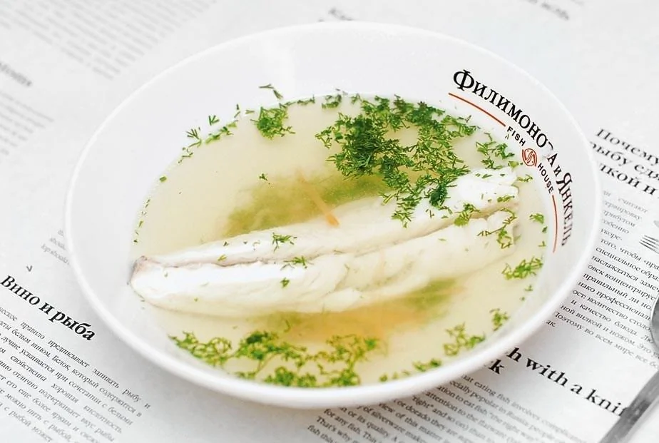 ШАГ 8 Разлить бульон по тарелкам. Положить в каждую по куску сибаса. Сверху посыпать мелко нарезанным укропом — и подавать на стол.